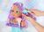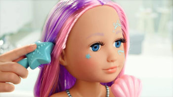На лице куколки волшебный макияж, который меняет цвет в теплой воде.