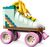 Pantoful de skate albastru pal este „împodobit” cu șireturi galbene strălucitoare legate într-o fundă, precum și modele vesele (ce fel de modele vor fi depinde de tine). Roțile roz strălucitor și o frână de cauciuc adaugă eleganță rolei.