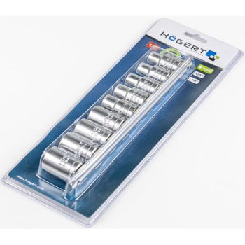 Set de сhei tubulare Hoegert HT1A880 9 buc. - fabricate din oțel aliat de înaltă calitate CrV. Rezistente la deformare. Forjate prin ștanțare. Oferă fiabilitate și durabilitate îndelungată. Ușor de utilizat, cu un design ergonomic și bine gândit. Dimensiunile capetelor 1/2”: E10 / E11 / E12 / E14 / E16 / E18 / E20 / E22 / E24.