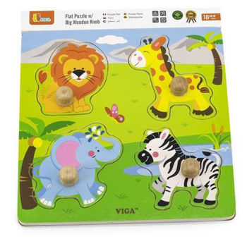 Puzzle Viga 50840 Puzzle din lemn cu buton Animale sălbatice