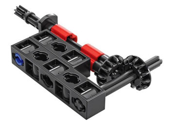 Kitul conține peste 80 de piese pentru a construi modele cu mecanism cu cremalieră și pinion și direcție funcțională.