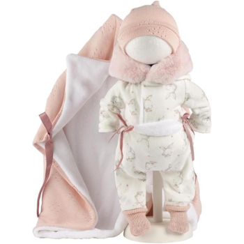 Păpușă Antonio Juan 28120 Bella in haine gri-roz calduroase cu poseta, 48306