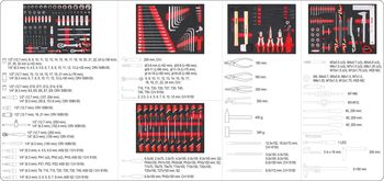 бокорезы; длинногубцы; клещи переставные; ключ комбинированный; ключ разводной; ключ шестигранный; кусачки; молоток; отвёртка; отвёртка индикаторная; плоскогубцы; рулетка; тестер напряжения; трещотка;