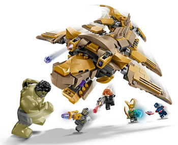 В набор входят 4 минифигурки - Капитан Америка со щитом, Черная Вдова со стреляющей шпилькой, Локи в плаще и шлеме и воин Читаури с лазерным пистолетом - плюс большая фигурка Халка. У левиафана 6 подвижных плавников, открывающаяся пасть, голова, которую можно повернуть немного вбок, и 2 стреляющие шпильки. Левиафан поставляется с прозрачными подставками, которые позволяют минифигуркам "летать" во время игры и делают экспозицию еще более впечатляющей.