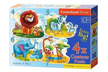 Яркие и красочные картинки оживляют африканских животных, привлекая внимание ребенка и стимулируя его воображение. Крупные элементы пазла удобно собирать даже маленьким детским ручкам.
