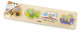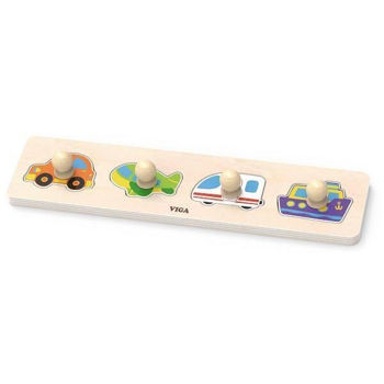 Деревянный пазл Viga Toys «Транспорт» разработан для малышей от 12 месяцев. В наборе 4 детали с удобными деревянными ручками в виде различных видов транспорта: машины, самолета, поезда и корабля. Ребенок должен правильно разместить элементы на основе, соответствуя форме.