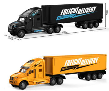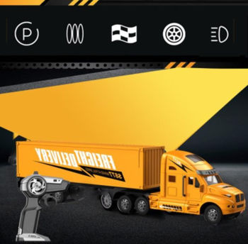 Радиоуправляемый грузовик трейлер (1:16) - GM1937 - это грузовой транспорт, специально предназначенный для дальних перевозок. Ведь грузовой тягач можно отправить в другой город или даже заграницу, например, в соседнюю игрушечную страну! Какие приключения ждут эту машинку – об этом знает только ее юный владелец. Ребенок оценит по достоинству высокую детализацию и реалистичность модели. Ведь трейлер отличается от настоящего как бы размером. Тягач имеет классический тип кузова, окрашенный в желтый черный цвет, а сзади расположен большой грузовой прицеп для разнообразного товара.