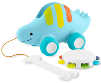 С тремя режимами игры — тамбурин, игрушка для толкания и игрушка для тянучки — наш очаровательный динозавр растет вместе с малышом, от сидящих до тех, кто начинает ходить. Съемный тамбурин легко трясти маленькими ручками. Или положите тамбурин на спину динозавра, толкните его и смотрите, как шипы вращаются, а колеса поднимаются и опускаются. В третьем режиме прикрепленная ручка в форме «кости» побуждает маленьких ходунков тянуть своего веселого динозавра на прогулку.