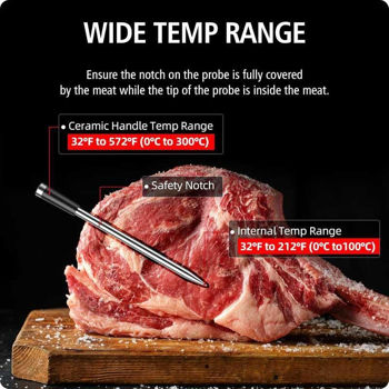 Избавьтесь от спутанных кабелей и наслаждайтесь свободой беспроводного подключения с радиусом действия до 100 метров . Идеально подходит для грилей, коптилен, духовок, сковородок или приготовления пищи методом су-вид . (Внимание: не рекомендуется использовать в микроволновых печах).