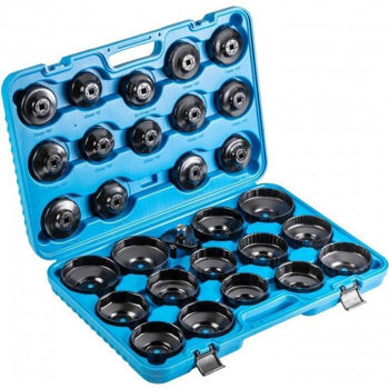 Набор из 30 ключей для крышек масляных фильтров для профессионального использования в мастерских и автосервисах. Необходим для эффективного откручивания и затягивания фильтров в легковых автомобилях и фургонах.