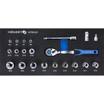 HT7G127 набор 3/8" торцевых головок с принадлежностями, 22 предм.