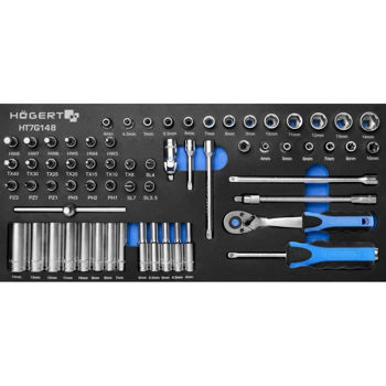 HT7G148 набор 1/4" торцевых головок и насадок с принадлежностями, 63 предм.
