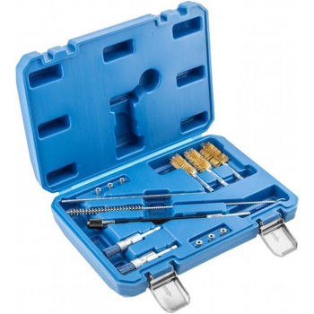 Набор из 14 элементов для очистки седел форсунок после их разборки. Необходим для эффективной очистки от грязи и отложений, что позволяет правильно собрать форсунки после их регенерации. Преимущественно используется в профессиональных мастерских и автосервисах.