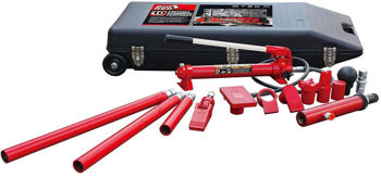 Набор гидравлического инструмента представляет собой компактный и удобный в эксплуатации комплект из гидравлического насоса и гидравлического цилиндра, с помощью которых создается рабочее усилие; удлинителей для упрощения работы; специальных фигурных соединяющих насадок, для надежного упора в детали кузова. Умело комбинируя насадки и удлинители, можно добиться высокой эффективности в проведении кузовных работ.